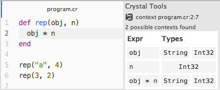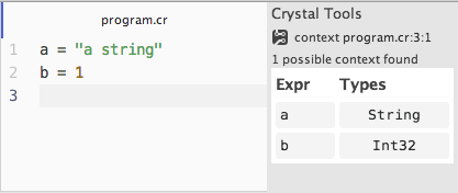 Since this tools were built on top of crystal compiler, with all it’s type inference and compiler phases, if the code does not compile you won’t be able to run any tool.